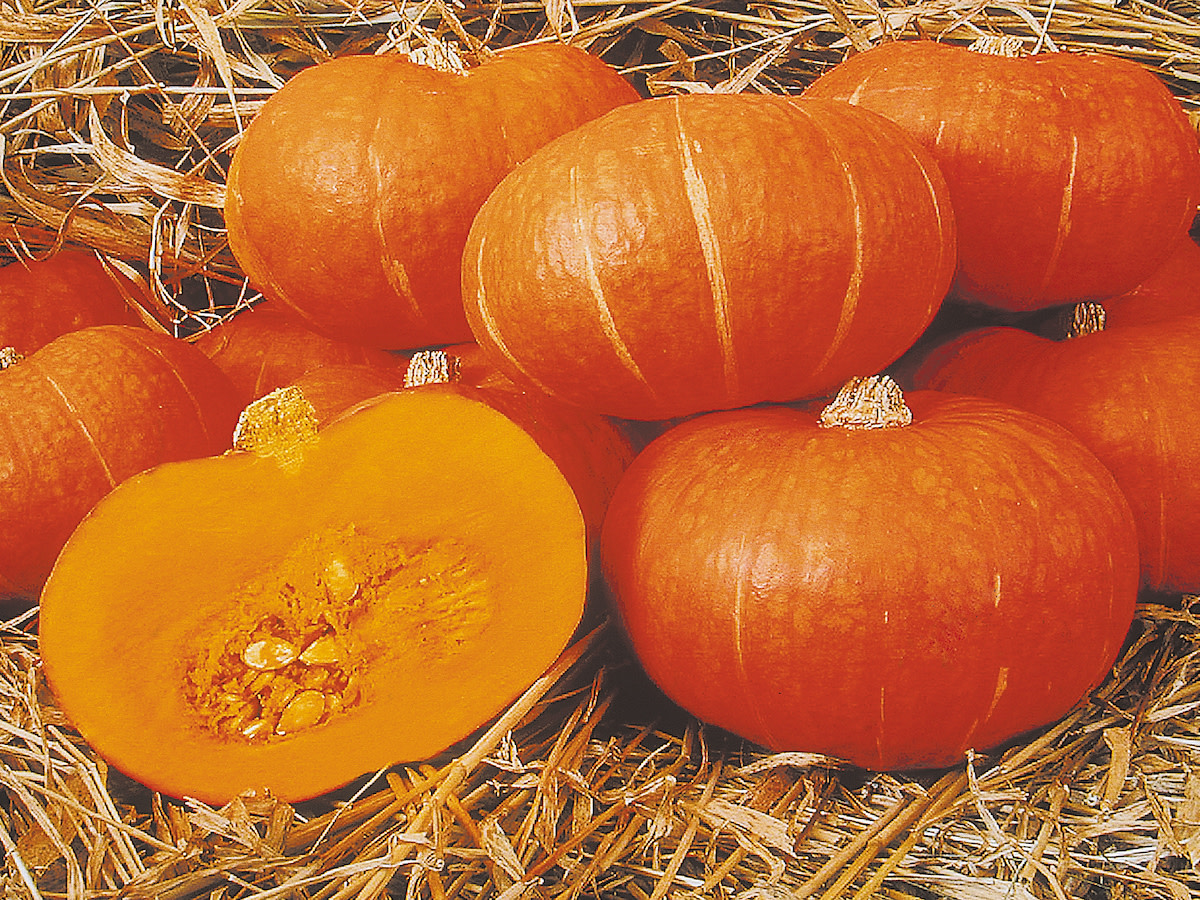 Johnny’s AAS winner combines the spectacular scarlet color of a Red Kuri with a sublime eating quality previously lacking in red squash. The bright orange flesh, dry yet tender, sweet yet meaty, has tested as high as Brix 15. The short-vined plants give a fair harvest of these cheerful round-shouldered slightly flattened fruits. One year we had 14 averaging 4.4 lb each from just three hills.