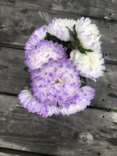 Annual. Irresistible bicolor 2–3" peony-type blooms of iridescent white and purple. Same uniformity, sturdiness and reliability of others in the Tower Series (see Tower Chamois).