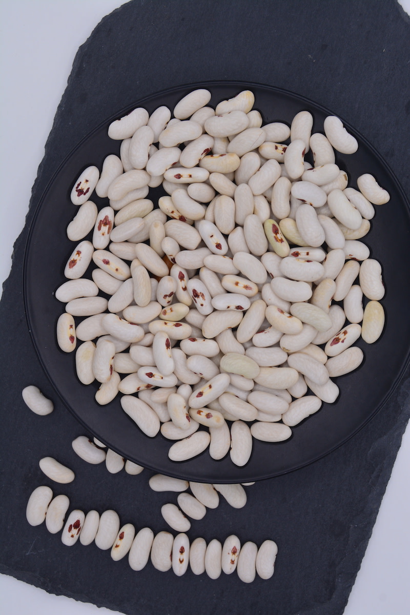 When about a plant’s-worth of white seeds turned up in 20 lb of Carol Deppe’s golden Gaucho beans, she picked them out and planted them. The resulting plants looked identical to Gaucho, with beans the same size and shape as Gauchos but white with a candle pattern on the hila. A recessive mutation present in Carol’s Gaucho population must have become homozygous in one plant. What fun! White Candle Gauchos have a milder flavor and the same high yield and agronomic characteristics as Gaucho. The two beans can be planted in the same row—occasional crosses between sister varieties aren’t a big deal. Save seeds from plants at the ends of the row and eat the ones that mingle toward the middle! By developing sister lines such as these, Carol is building ease of seed-saving right into the varieties’ genetics.