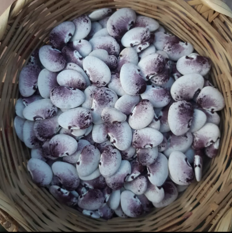 Pole type. Searching for a pole lima that will actually ripen in the Northeast? We’ve picked a beauty! Vigorous vines produce large 4" pods with 3 huge flat beans, white with a splotch of punctate mulberry-purple speckles that turn burgundy as beans dry. Delicious!—tender, sweet and delightfully beany, nothing like the frozen or canned limas you were forced to eat as a kid. Through multiple trial years they have yielded well, even through long stretches of drought and high heat. Bred by Mrs. Winfield of Painted Post, NY, in the early 1940s and introduced to the seed trade in 1953 by the Billy Hepler Seed Company, which Hepler started at age 12 with help from his father. After his father died in 1962, Hepler’s inventory was sold to Farmer Seed & Nursery Company of Fairbault, MN, which sold the bean as North Pole Lima in its 1965 catalog.