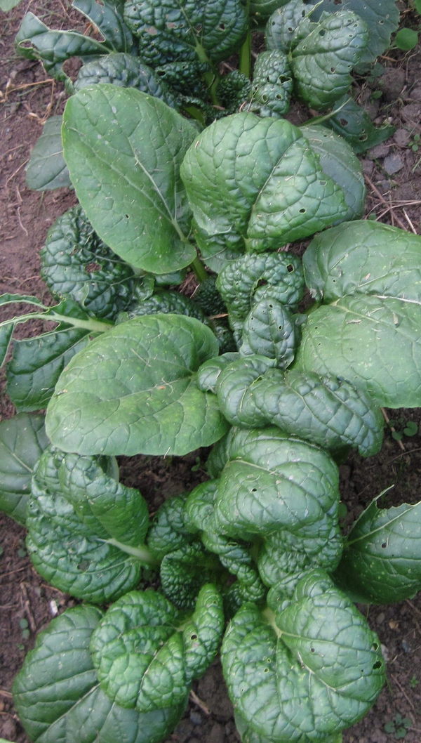 This Asian green has a Japanese name that could be written ‘snow, vegetable’ or ‘fortune, endure.’ The auspicious tatsoi look-alike can survive those early fall freezes. Grows in rosettes like Tatsoi, but bigger, more upright at 16" and with less shiny and more puckered leaves. Harvest young as a mild salad green or when mature for braising. The thick deep green spoon-shaped leaves are borne on pale green stems. Vigorous, easy to grow and quite oishii.