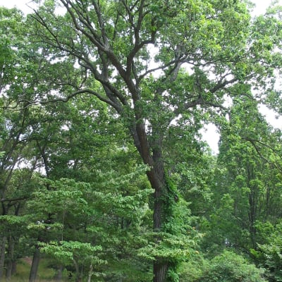 Quercus rubra 60-75' x 45'. The most common oak in northern New England. Magnificent open rounded crown. Fast growing. Tolerant of different conditions. Z4.