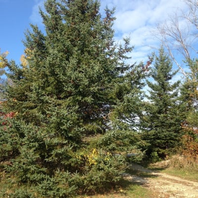 Picea glauca 60-80'. Native conifer, one of the best trees for wind blocks and privacy screens. Adaptable and tolerant to wind, drought and cold. Z2.