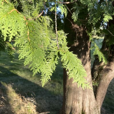 Thuja occidentalis 20-60'. Narrow and tall with twiggy branches, soft fibrous orange-brown bark, and distinct flat foliage. Good for screens and hedges. Z2.