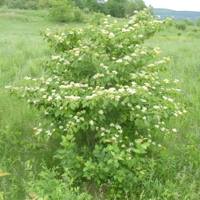 Cornus alternifolia 20' x 30-35'. Small tree or large multi-stemmed shrub with tiers of horizontal branches and fragrant white 2-3" flower clusters. Z3.