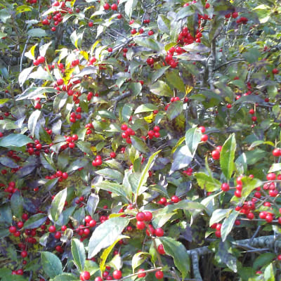 Ilex verticillata Bright-red berries stand out through the winter, providing late-spring forage for birds. A staple of the Maine landscape. Unsexed seedlings, plant several for berries. Z4.