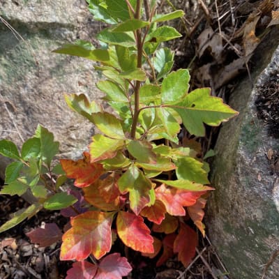 Rhus aromatica 5-6' x 6-8'. Leaves emit a pleasing aroma when crushed. Phenomenal fall colors. Adaptable and easy to transplant. Useful in erosion control. Native to eastern U.S. Z3.