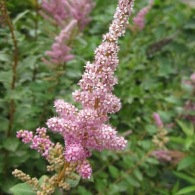 Spiraea tomentosa 2-4' x same. Adorable little plant. Rosy pink steeples emerge as terminal spikes about 4–6" tall. Easy to grow. A must for every butterfly garden. Z3.