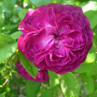 Rosa 4-5' × same. One of the oldest and most beautiful of the antique shrub roses. Highly fragrant medium-pink very double quartered blossoms. Z3.