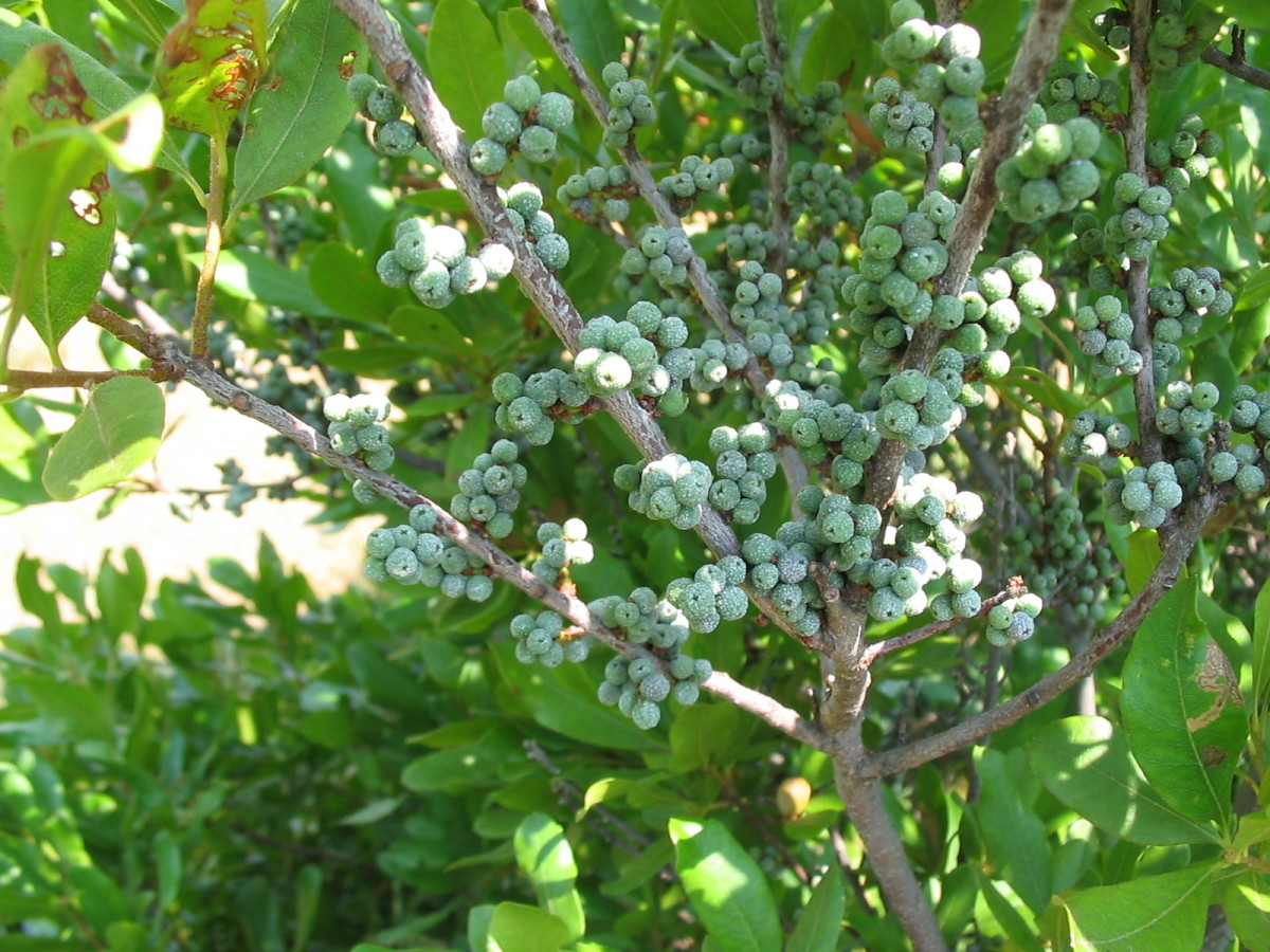 A common sight along Maine’s rocky shores. Glossy leaves are highly aromatic, although not to be confused with the Mediterranean bay leaf in your spice collection. Small greyish-blue waxy fragrant berries were historically used for making candles.