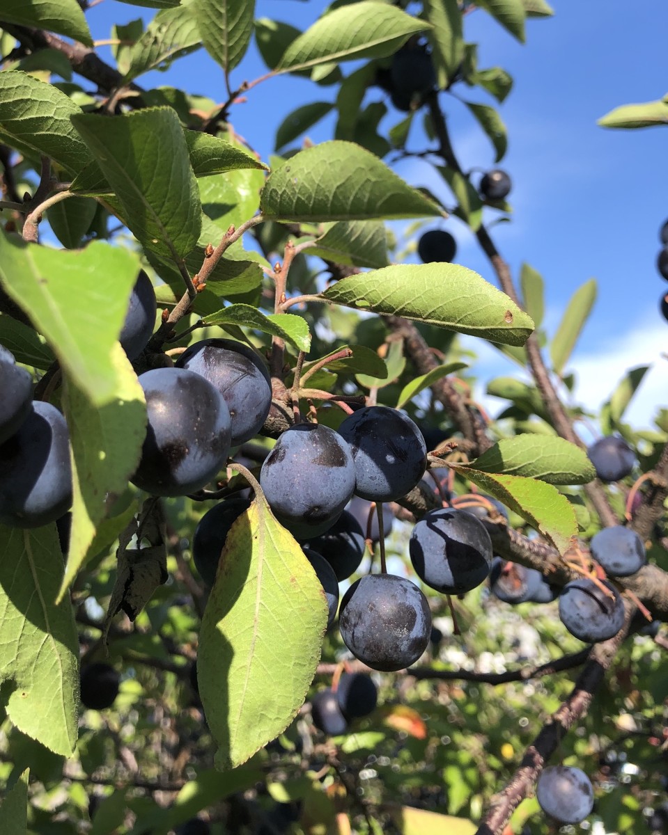 In spring beautiful showy white blooms cover the dark branches. Purplish-red (or occasionally orange-yellow in some specimens) ½–1" fruit in late summer. Excellent jams, sauces and especially jelly. Easier to grow than dessert and culinary plums and some seedlings have surprisingly good fruit for fresh eating.