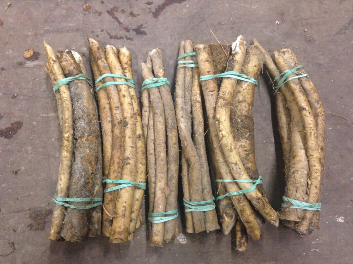 Leaves can be cooked as greens. Roots are traditionally harvested in the fall, but you can dig them anytime. Roots keep 3-4 months in the fridge.