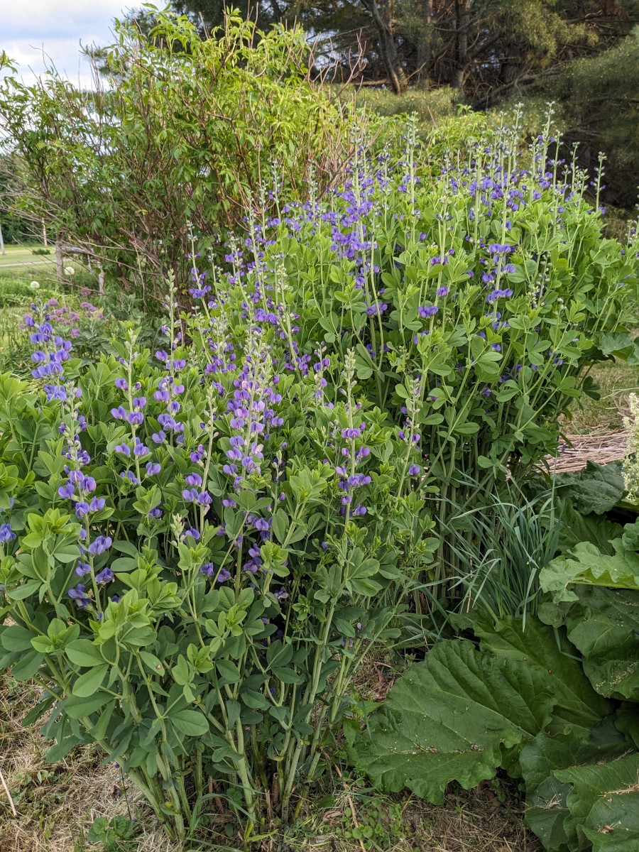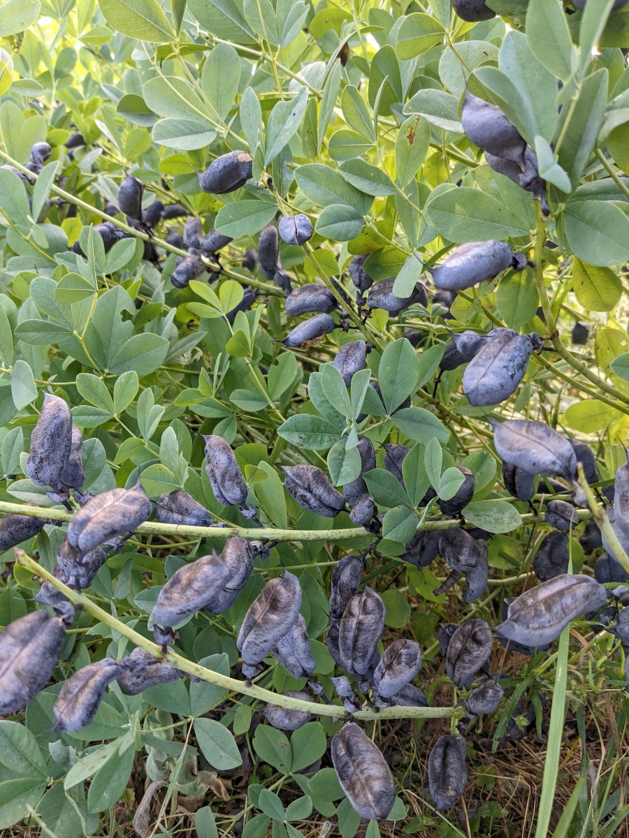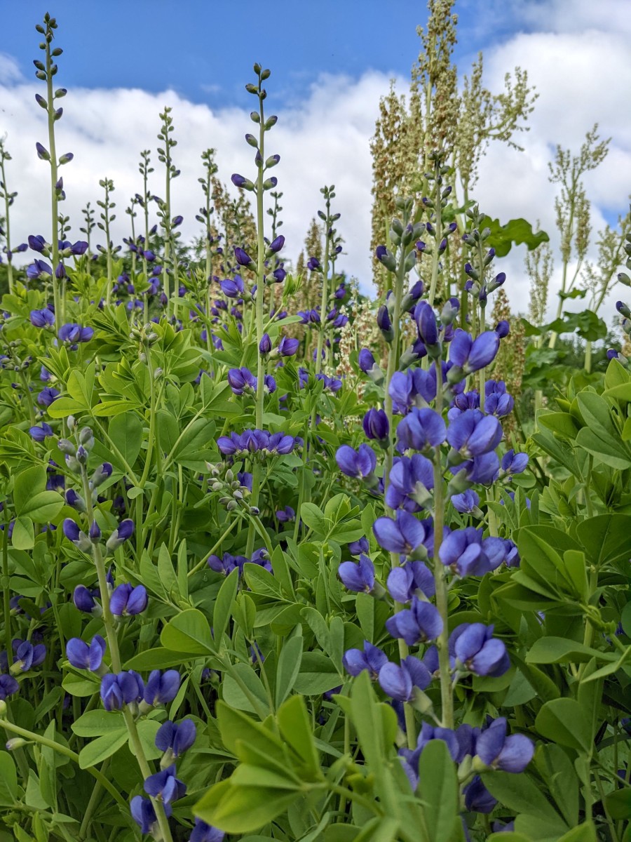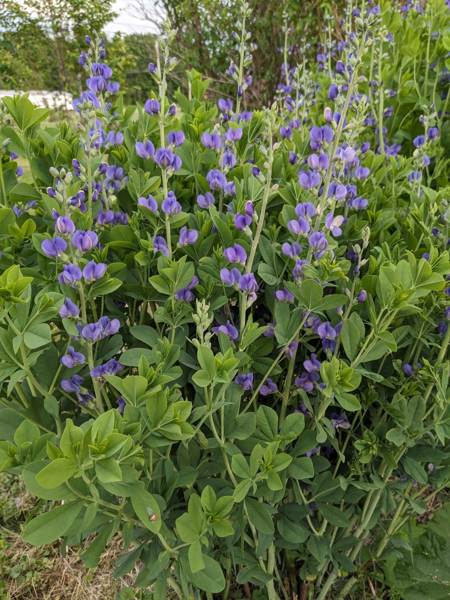 An early summer stand-out with vibrant blue lupine-like flowers. Native nitrogen-fixing legume is a larval host plant for many butterfly species. Has a bushy habit and short shrub-like vase structure once mature. Seed pods turn black in fall, adding interest to the autumn landscape and offering forage for granivore birds. Will develop an extensive root system, good for holding slopes to prevent erosion.