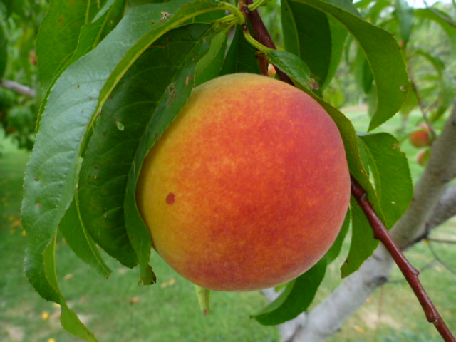 Growth habit similar to Redhaven, but fruit ripens 3 weeks later. Resistant to leaf spot. Because it blooms quite late, it might escape late spring frosts. Z4 maybe Z3. (3–6' bare-root trees)
