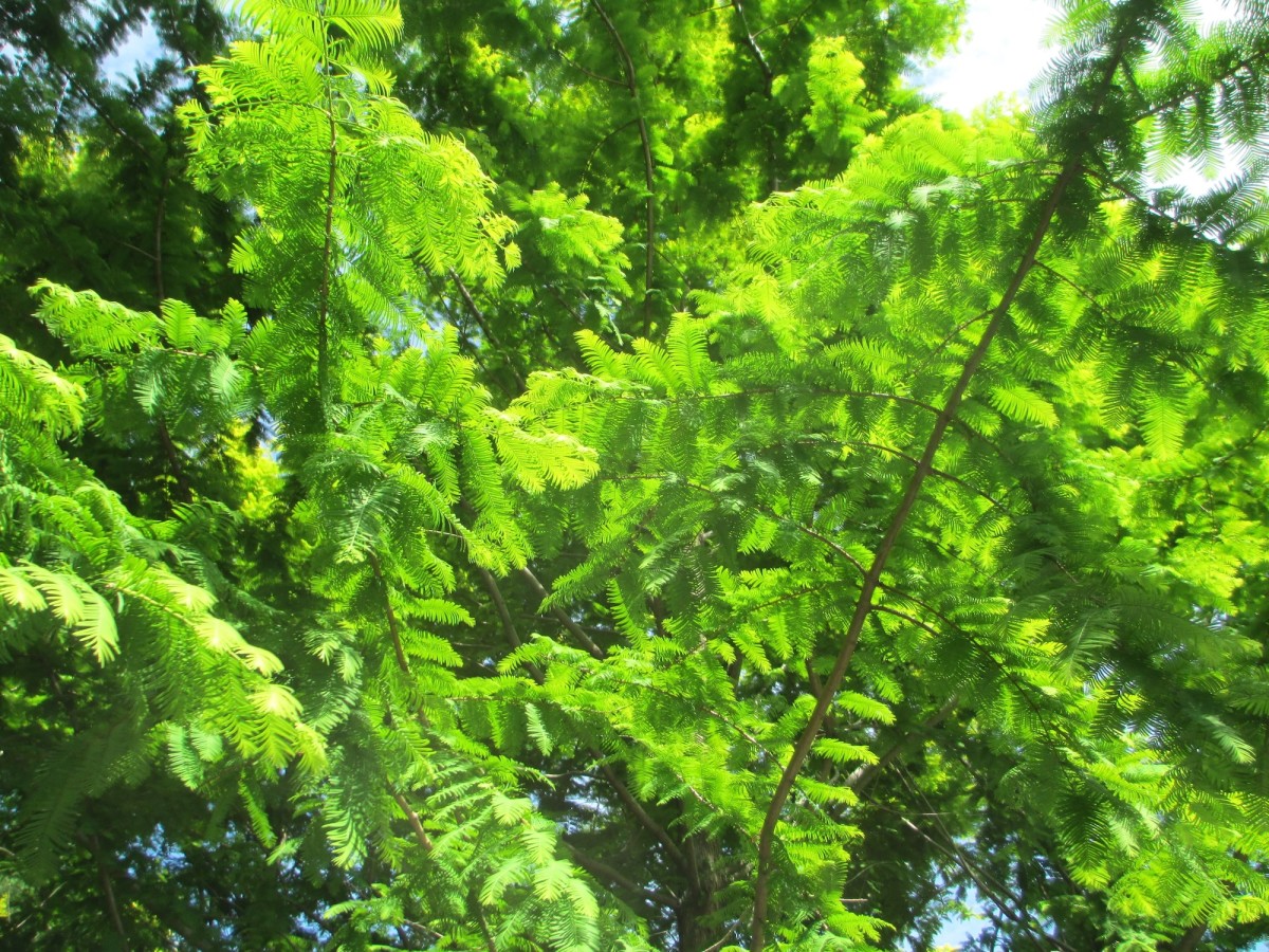 The wide irregular trunk looks like something out of a fairy tale with its iridescent golden-orange bark that becomes deeply grooved, hollowed and fluted with age. The bright green deciduous needles turn orange in the fall. Grows quickly, up to 50' in 15-20 years, with many small-diameter horizontal branches and a uniform conical habit. Give it lots of space!