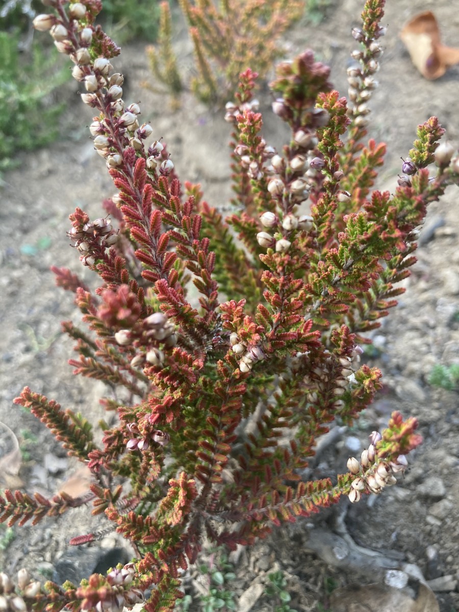 In early spring vibrant yellow-green foliage emerges followed by tiny orange-red flower buds in June. As the mauve flowers awaken from their buds in August, the overall visual effect is a rainbow tie-dye. Blooms linger into October, and maybe longer. Salmon-red foliage turns dark brick-red in late fall through winter. So far, this is among our top favorites. Upright habit. Z4. (4" pots)