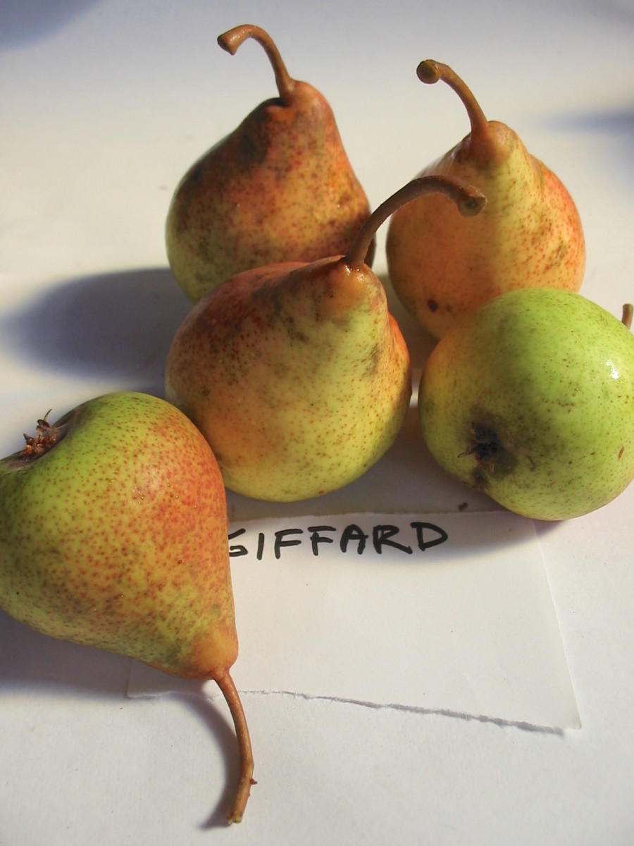 Chance seedling discovered by Nicolas Giffard, Foussieres, France, 1825. Introduced to the U.S. about 1850. Also called Beurre Giffard.