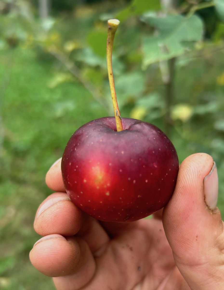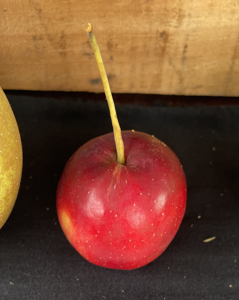 It was already an heirloom by the time Beach described it in 1905 as “one of the best known and most widely cultivated of the crabapples.” As culinary crabs fell out of general favor, Hyslop receded into history. Fortunately some orchards kept them going, like Lakeside Orchard in Manchester, ME, which has a long row of Hyslop trees. Of historic value for us Mainers as the pollen parent of the fine Castle Hill apple Dudley Winter.