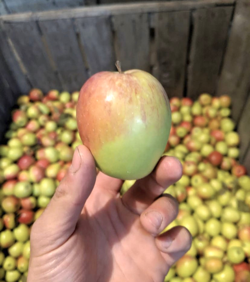 The trees themselves have a natural pyramidal form and are a nice size for smaller gardens and yards. Fruit explorer and orchardist Matt Kaminsky (aka Gnarly Pippins) found these gems at Mountain Orchard in Granville, MA, and described them as “DIVINE.” Scions were brought to this orchard in the Berkshires by their Moldovan crew leader, who introduced the apple by the name Senapka. Popular in Russian markets in the 1900s and found in heirloom collections here and there in the U.S. Stores well.