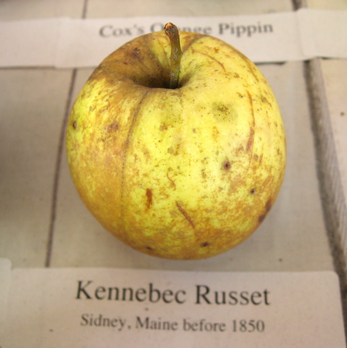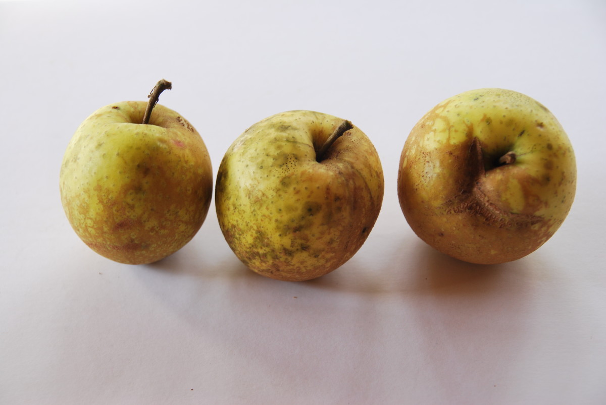 Medium-sized russet with little acidity is used for cider and makes excellent sauce. Leave the sweet tasty pear-like skins on when you cook them! Round long-stemmed fruit with yellow skin, mostly covered with a netting of russet. Ripens in early October and keeps only a few weeks.
