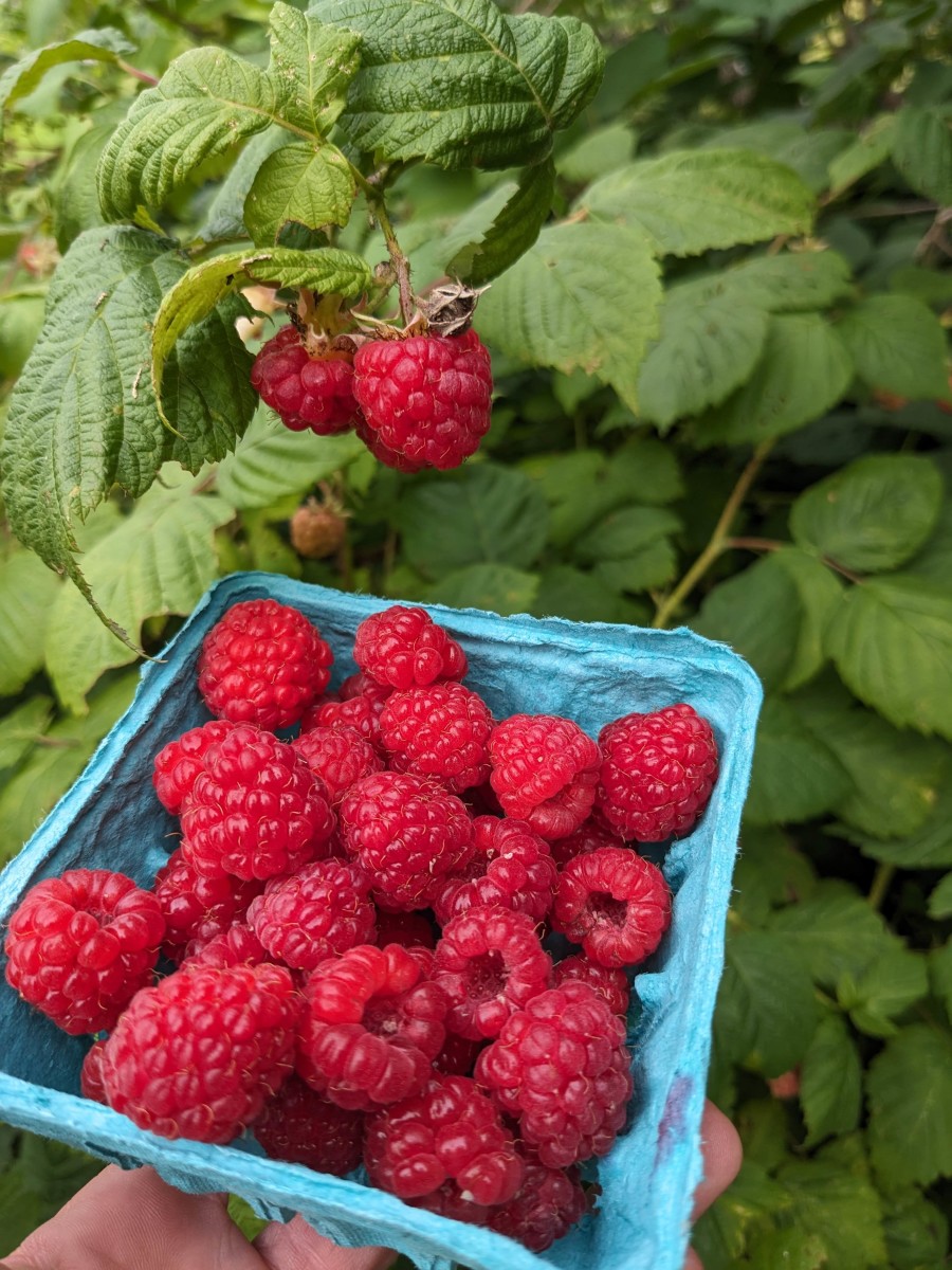 Summer-bearing raspberries bear on second-year canes (floricanes). Midseason berries ripen around late July in central Maine. Sturdy 4' canes. Hardy, and yields consistently. Z4. (bare-root canes)