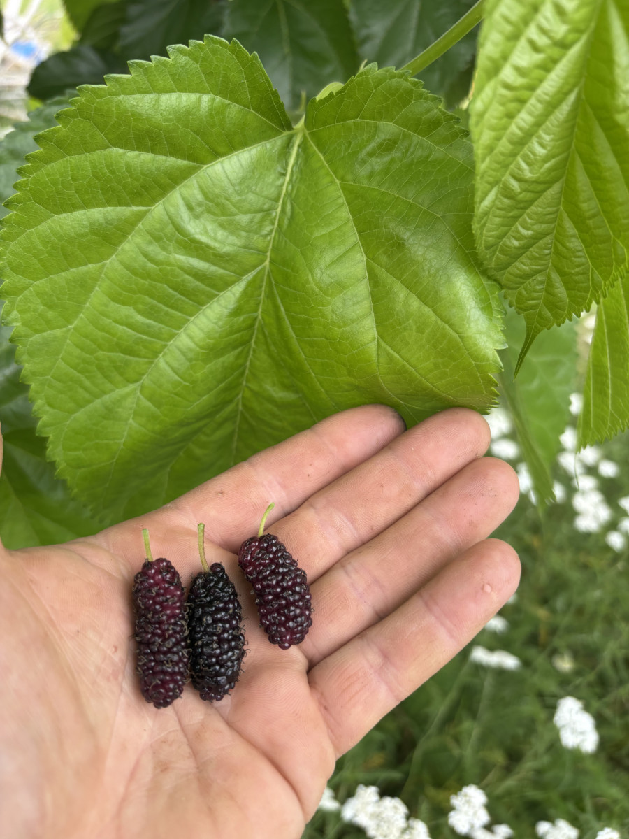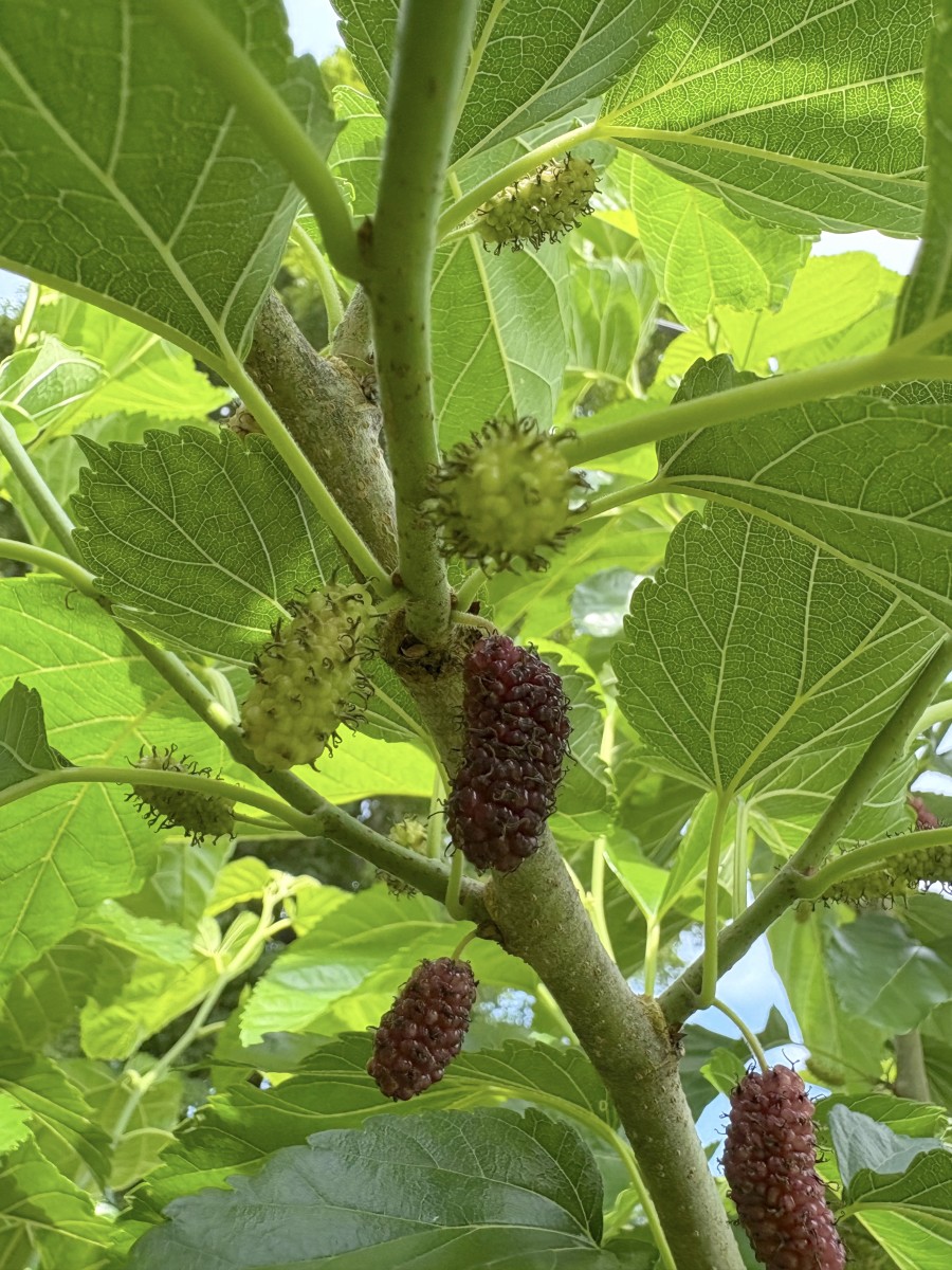 Widely thought to be of Korean origin, but may have first been selected in Japan as fodder for silkworm production due to its enormous leaves. Sometimes considered to be a separate species, M. latifolia, which means ‘broad-leaved.’ Precocious fruiting. Z4. (2-4' bare-root trees) Limited supply—order early!