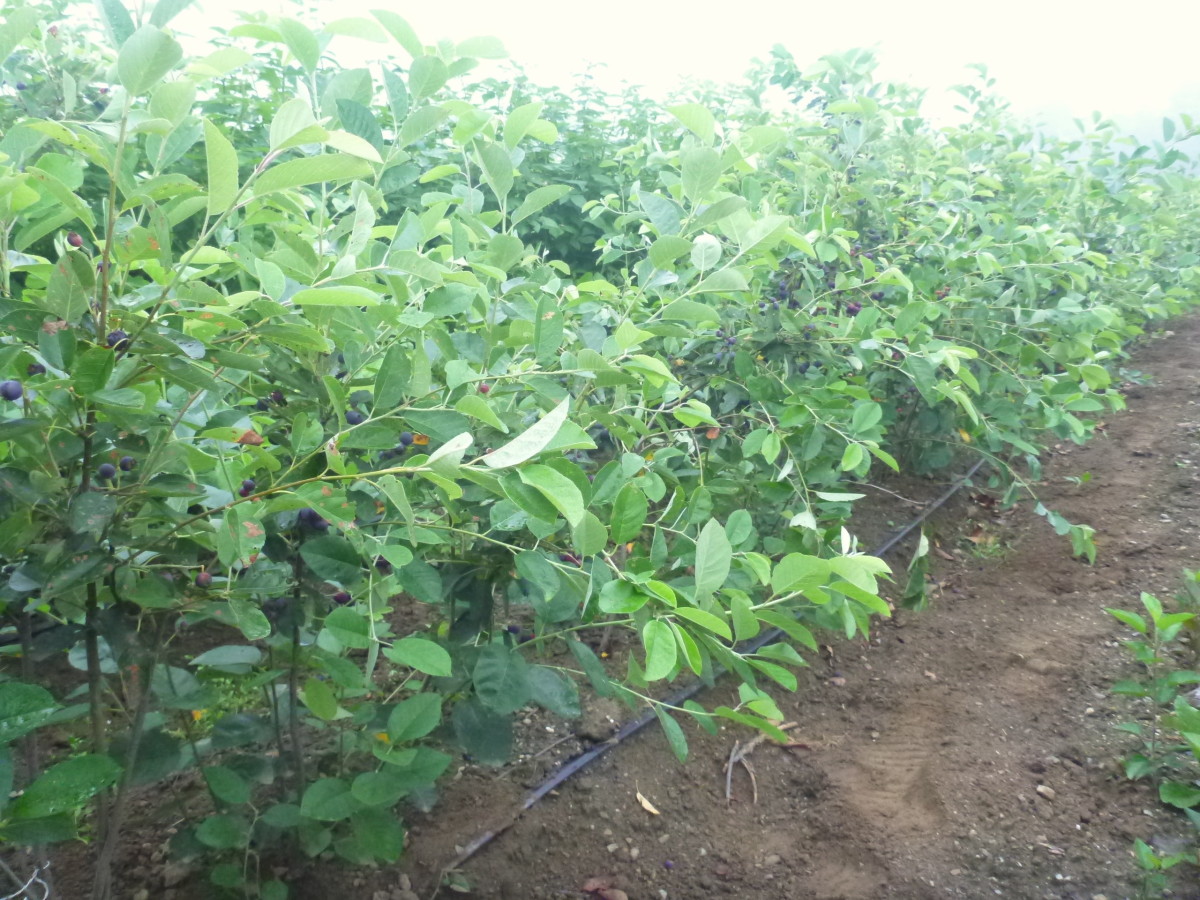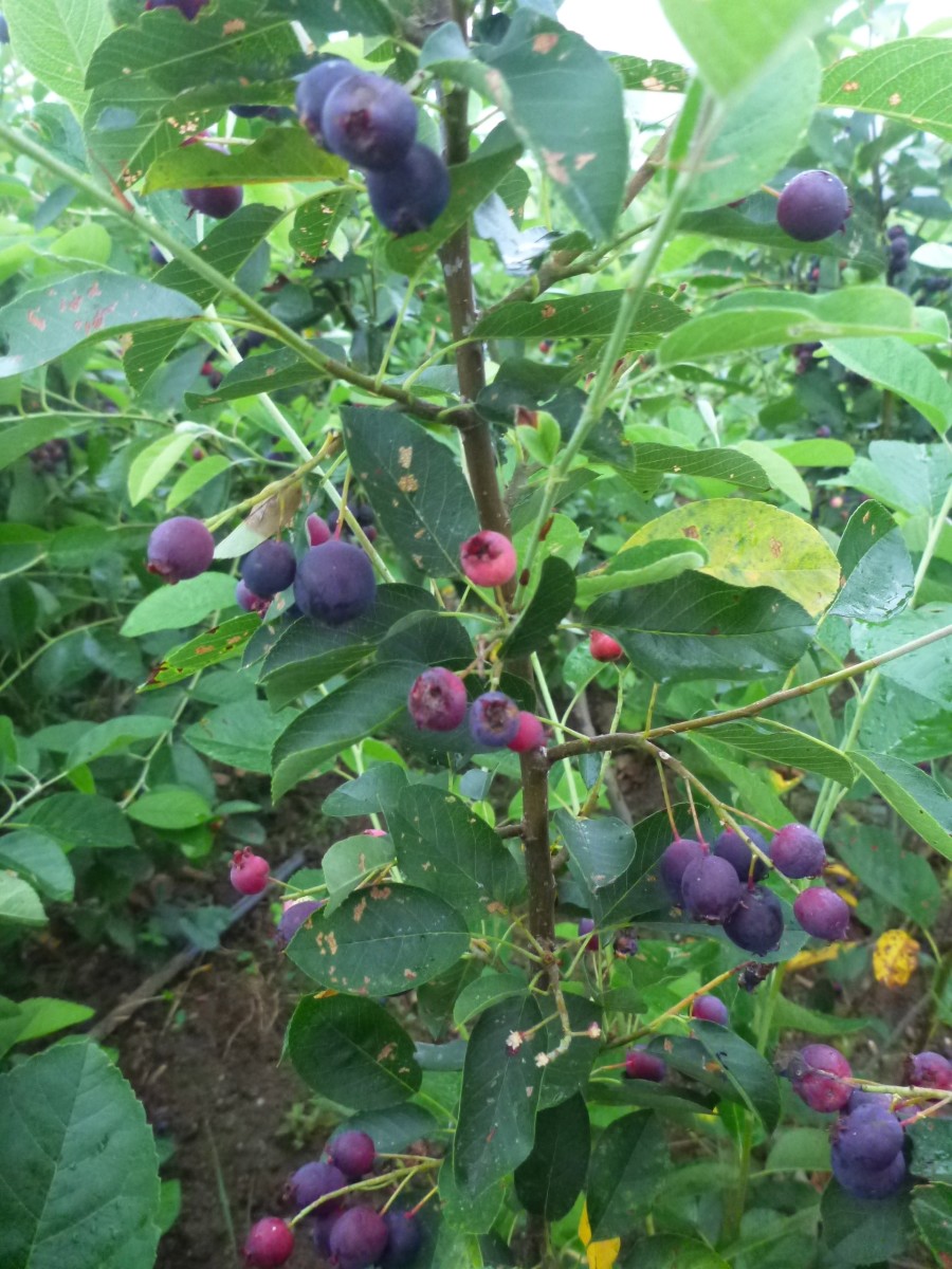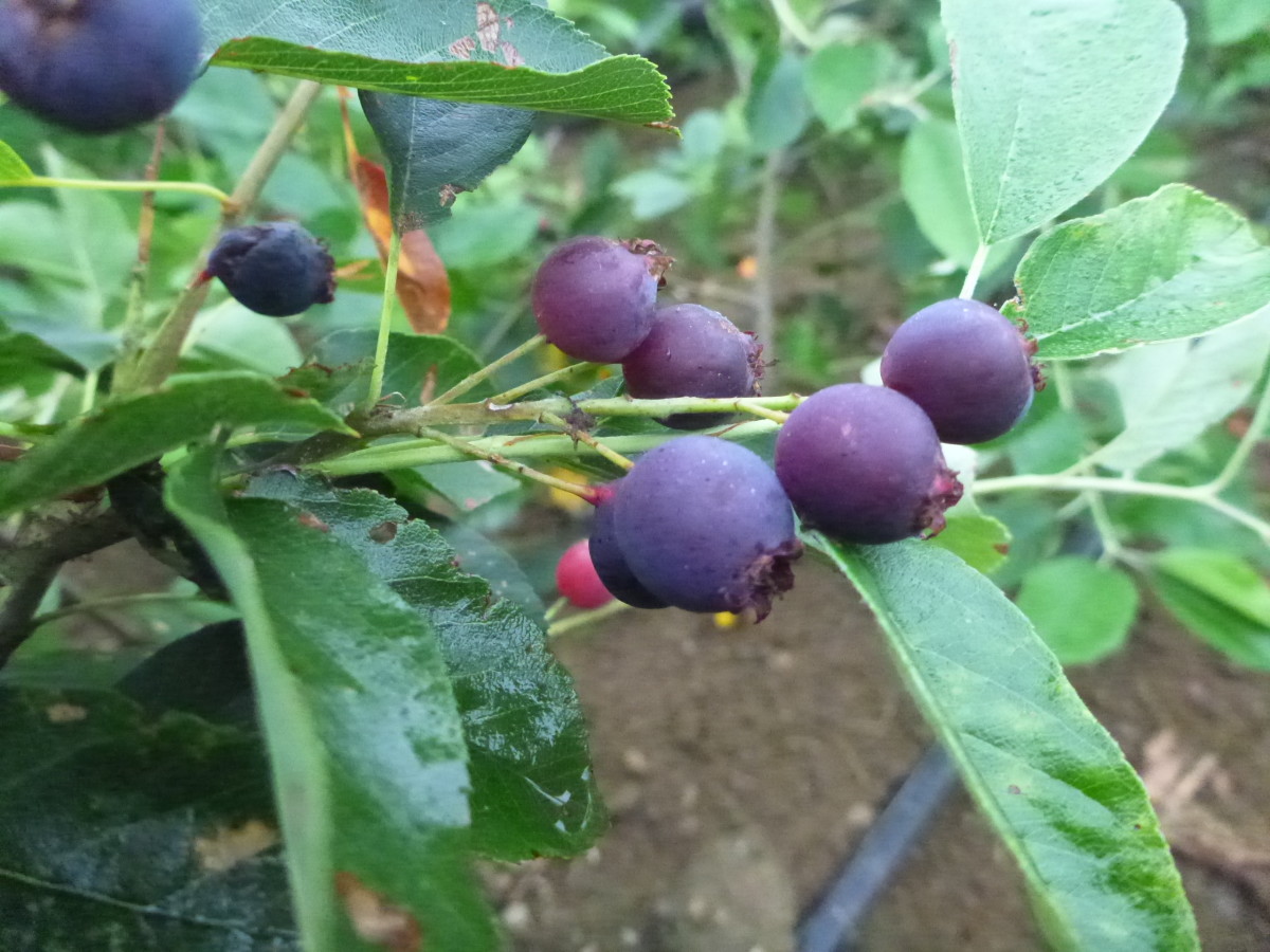 Clusters of medium to large purplish-black berries are mildly sweet and quite tasty. Large yields on a somewhat upright shrub with loose arching branches.