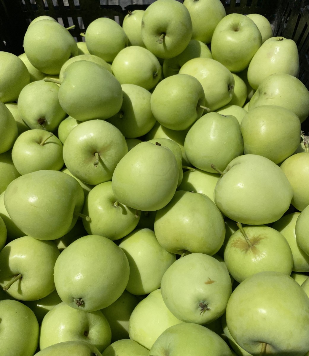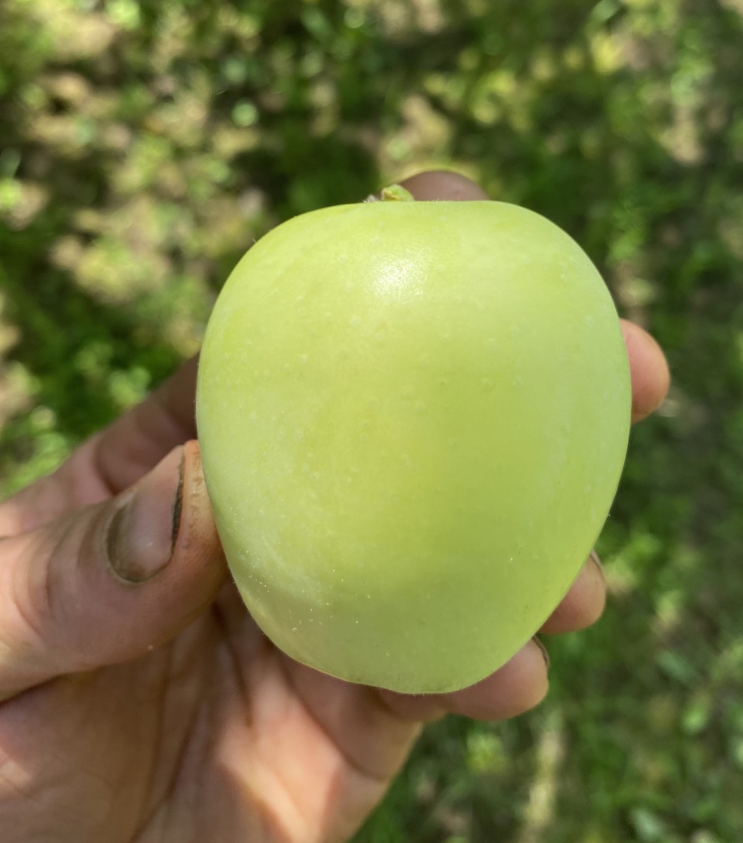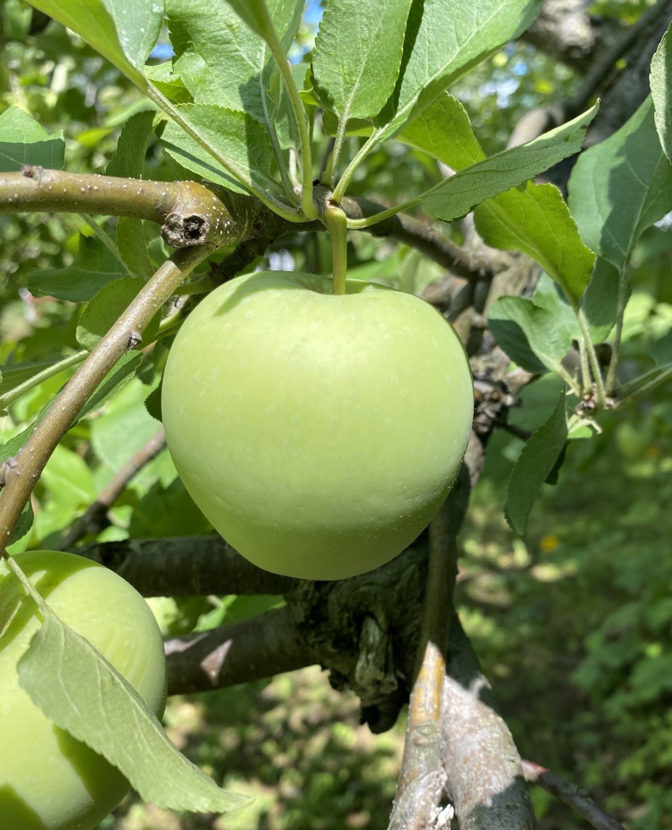 Bred to be an easier-to-grow modern replacement of sorts for the hardy Russian early season Yellow Transparent. Not quite as pale and translucent as its parent, Lodi is nevertheless a highly attractive conical slightly ribbed smooth-skinned light green apple that appears to glow on the tree when ripe in midsummer. Medium- to fine-grained white flesh with green highlights. Very tart fresh eating, more so than Granny Smith, which it resembles in color. Great for sauce and summer pies. Ripens in mid-late July. Does not store long. Blooms early. Z3.