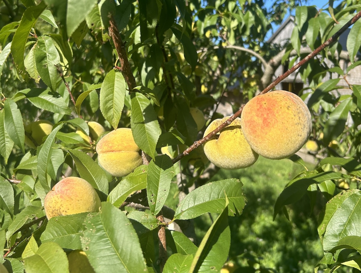 A fine peach for the North, with hardiness similar to Redhaven but ripening 3 weeks later, around the time of the Common Ground Country Fair. Medium-large fruit with bright orange skin and bright red blush. Orange-yellow firm fine-textured juicy flesh with excellent very sweet rich peach flavor. Skin peels easily. Freestone, excellent canner. Very productive.