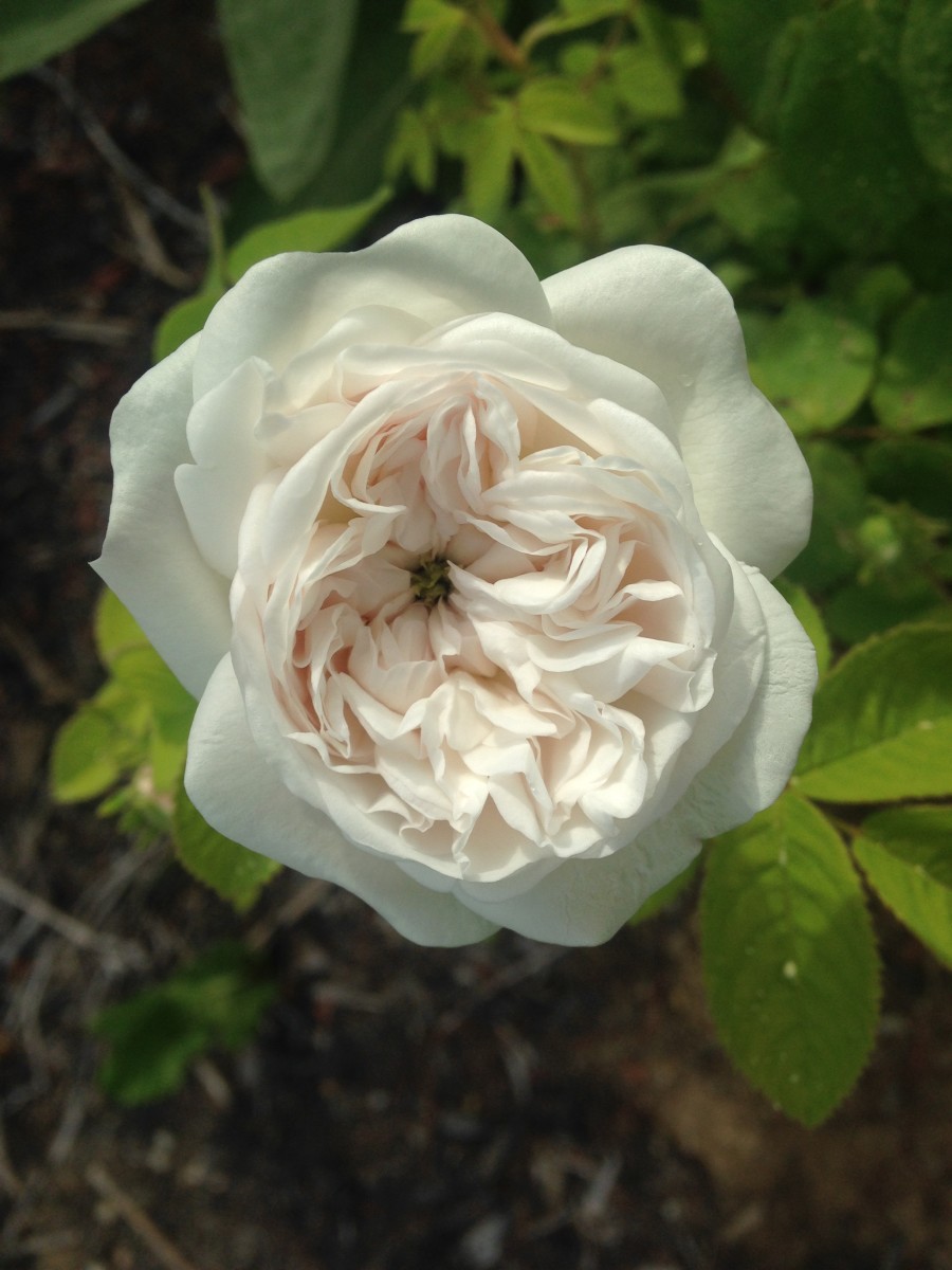 Highly fragrant alba with clusters of highly double 2–3" pale white blossoms, sometimes containing more than 200 petals per flower. Buds are blushed with pink and open to entirely white. Blooms profusely end of June into early July in central Maine with no repeat. Medium-green smooth foliage on upright arching stems with few thorns.