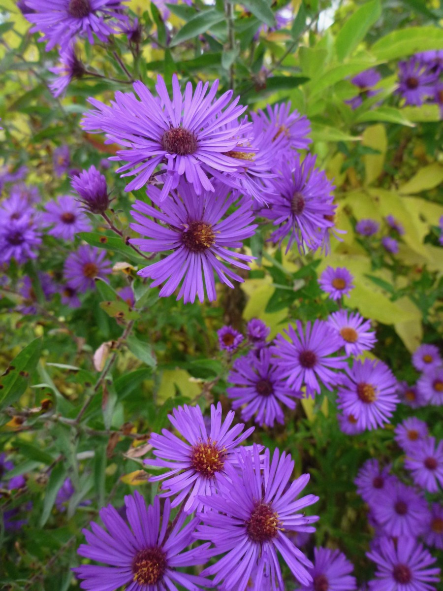 North American native with freely branching sprays of brightly colored flowers decorate the autumn landscape throughout the Northeast. Colors range from blue-purple to lavender-pink with yellow eyes. Asters add hardy grace to the back of the wild border and will naturalize on banks or in the meadow. Cut back slightly in early to mid June to induce an abundance of 1½-2" rayed blooms from late August into October. Deer usually don’t eat them. Provides a late-season source of nectar for hungry pollinators.
