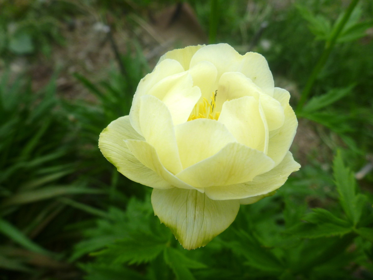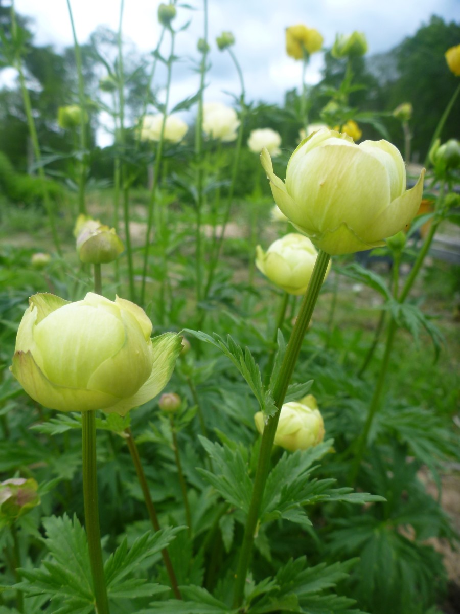 20-28" tall. Doubled petals on a plate of sepals all shimmer in light cream to Chardonnay yellow. Z3.