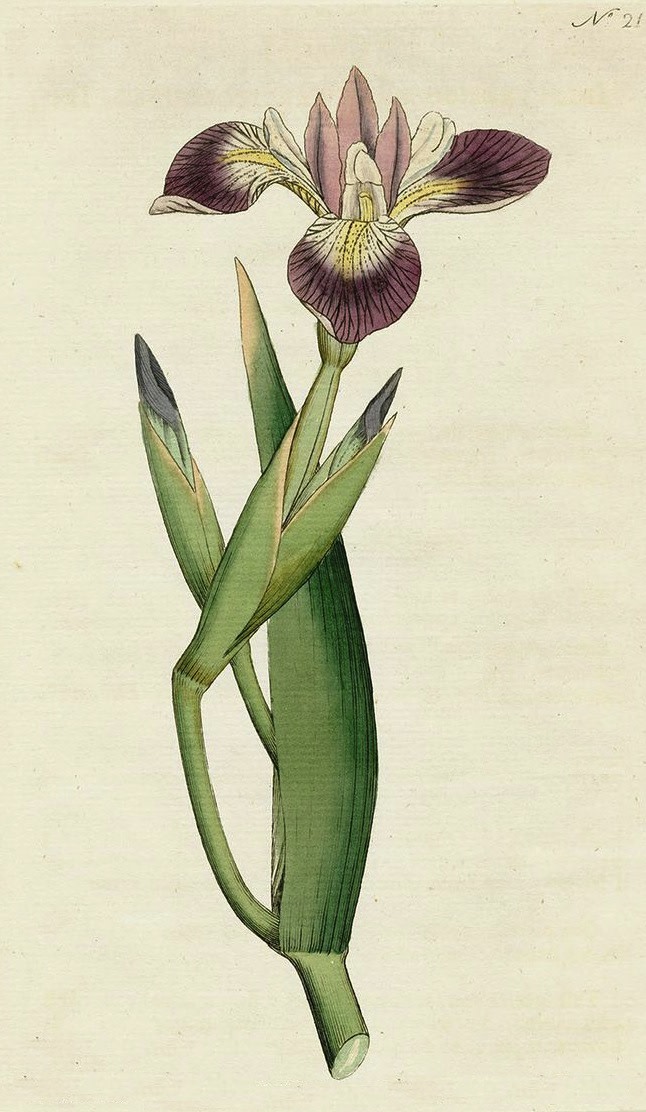 Northeastern native species carries gorgeous blue-violet flowers with bold purple veining and a white and lemon-yellow blaze. Tall slender blue-green arching lance-shaped leaves offer a strong vertical feature to the landscape.