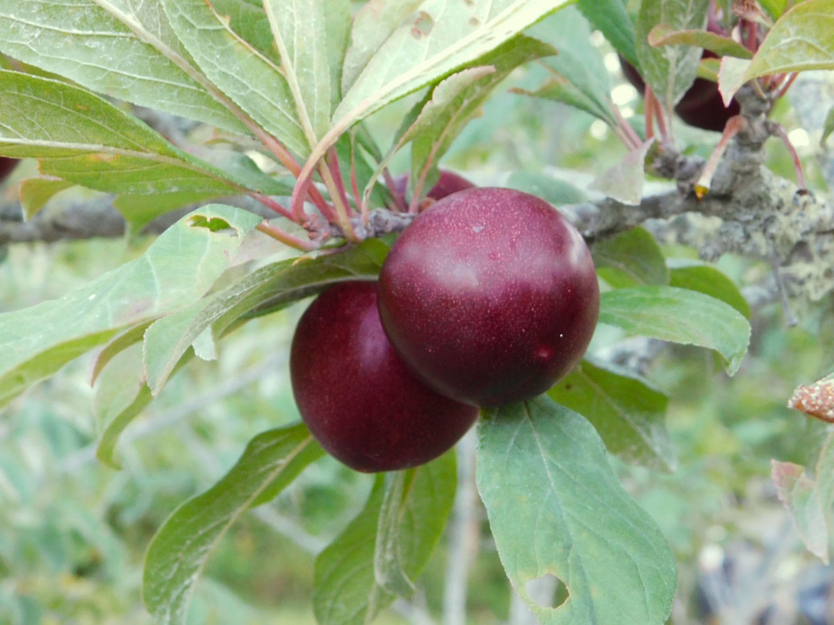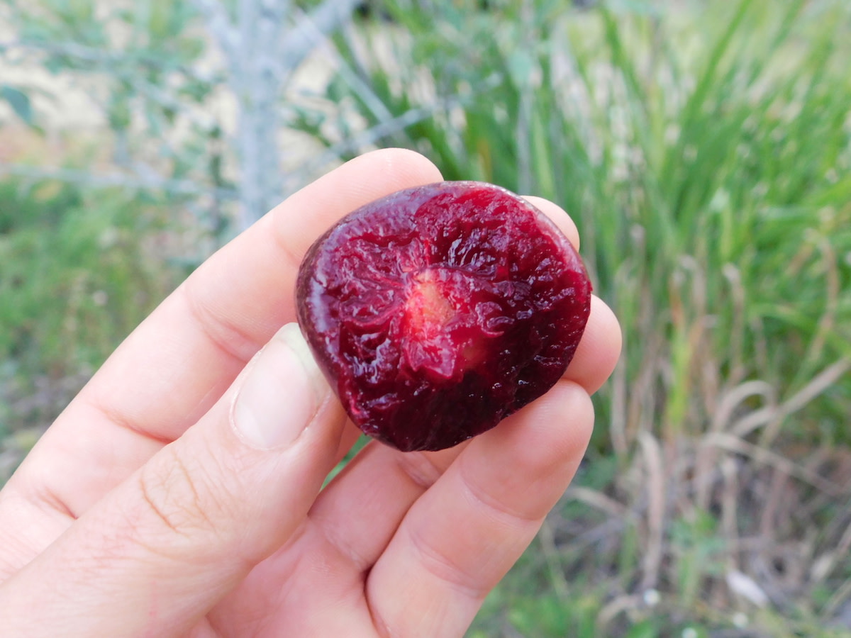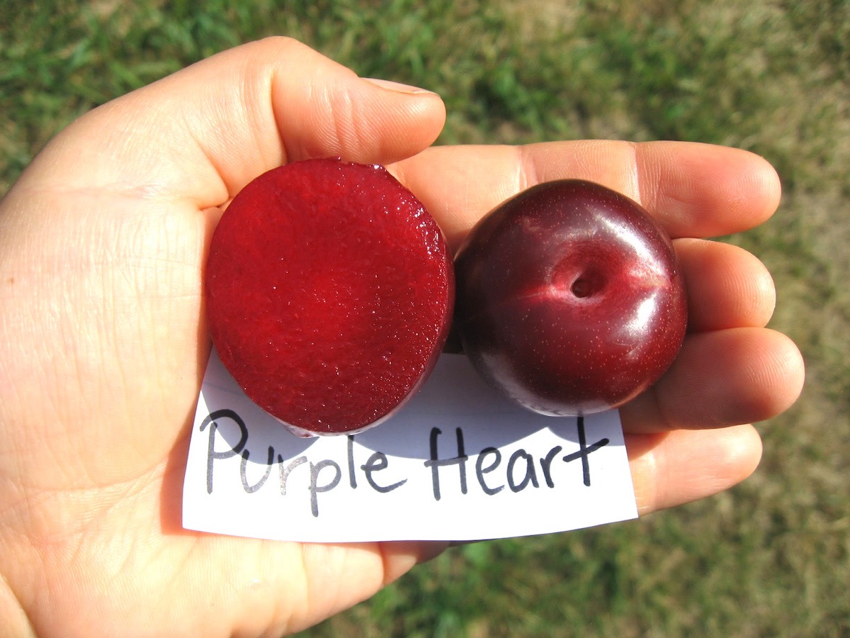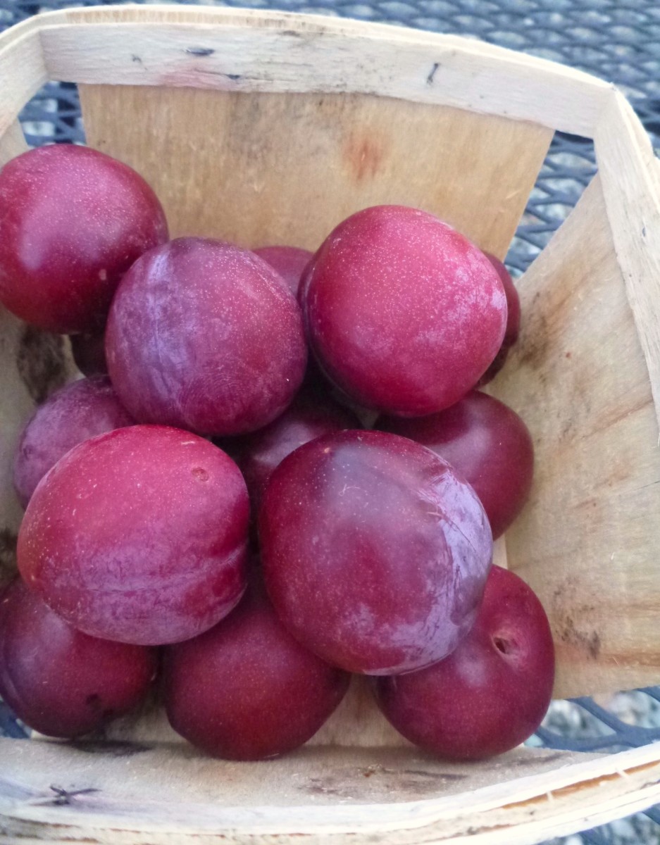 Medium-sized clingstone fruit with red-purple skin and flesh. Some say the most delicious plum we offer. Meaty, mild and rich with no astringency. It’s wonderful. Origins shrouded in mystery. It was brought to the great plant breeder Professor Elwyn Meader by a fellow who passed away before Meader could ascertain the plum’s origin.