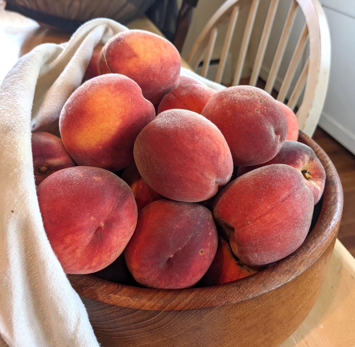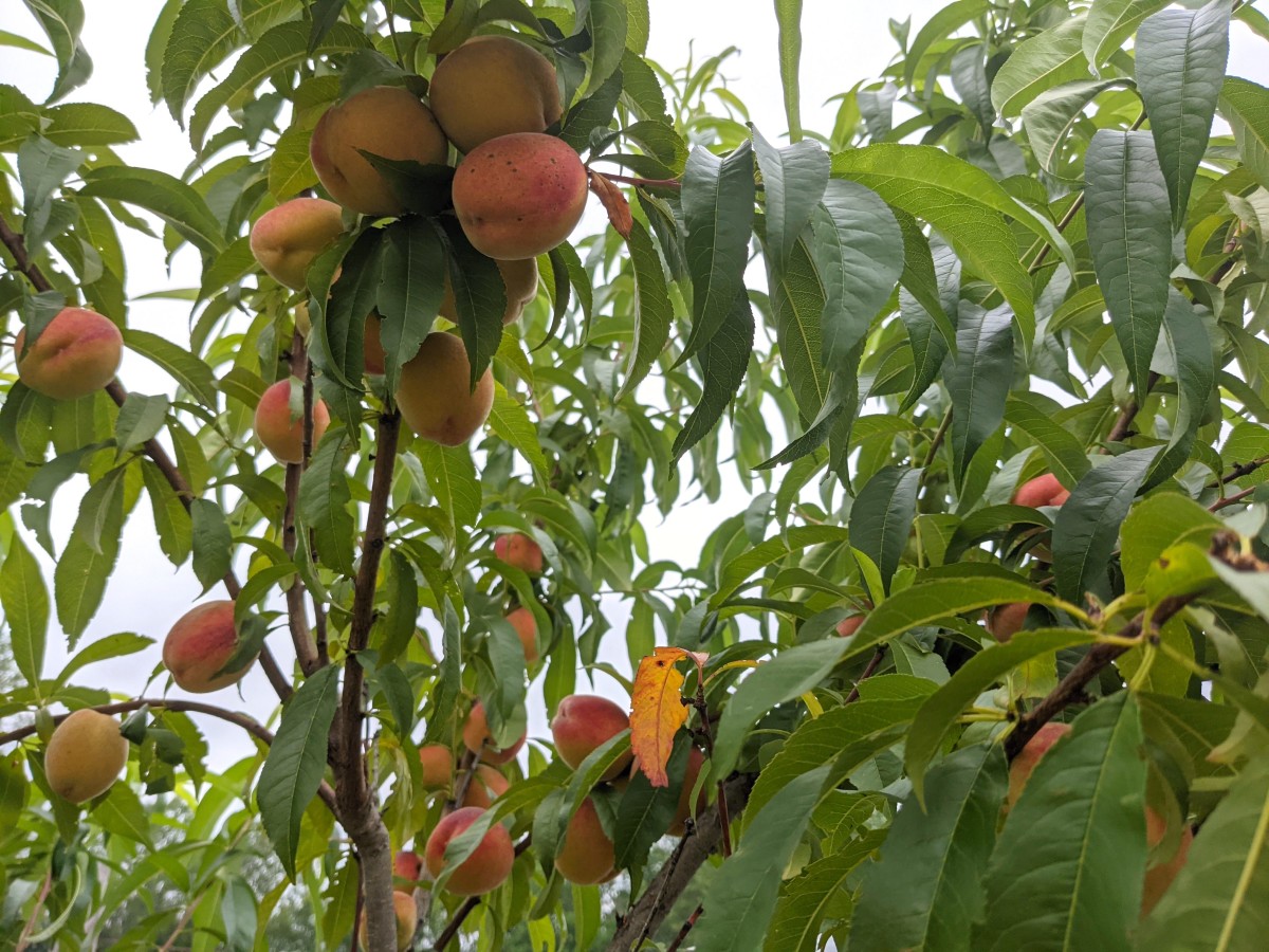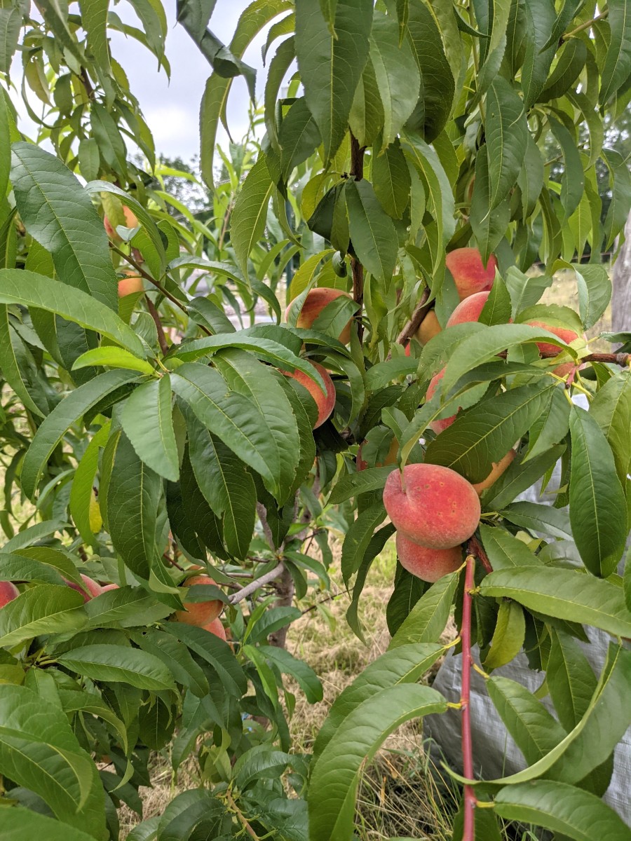 Medium-sized, roundish, freestone. Rather dull red blush over greenish yellow. Bright yellow flesh, soft and juicy. Flavor usually considered fair, but we love it in Maine for its unfailingly reliable crops no matter what. Often produces large crops. Bears at an early age. May have some resistance to peach leaf curl. Z4 and pockets of Z3. (3–6' bare-root trees)