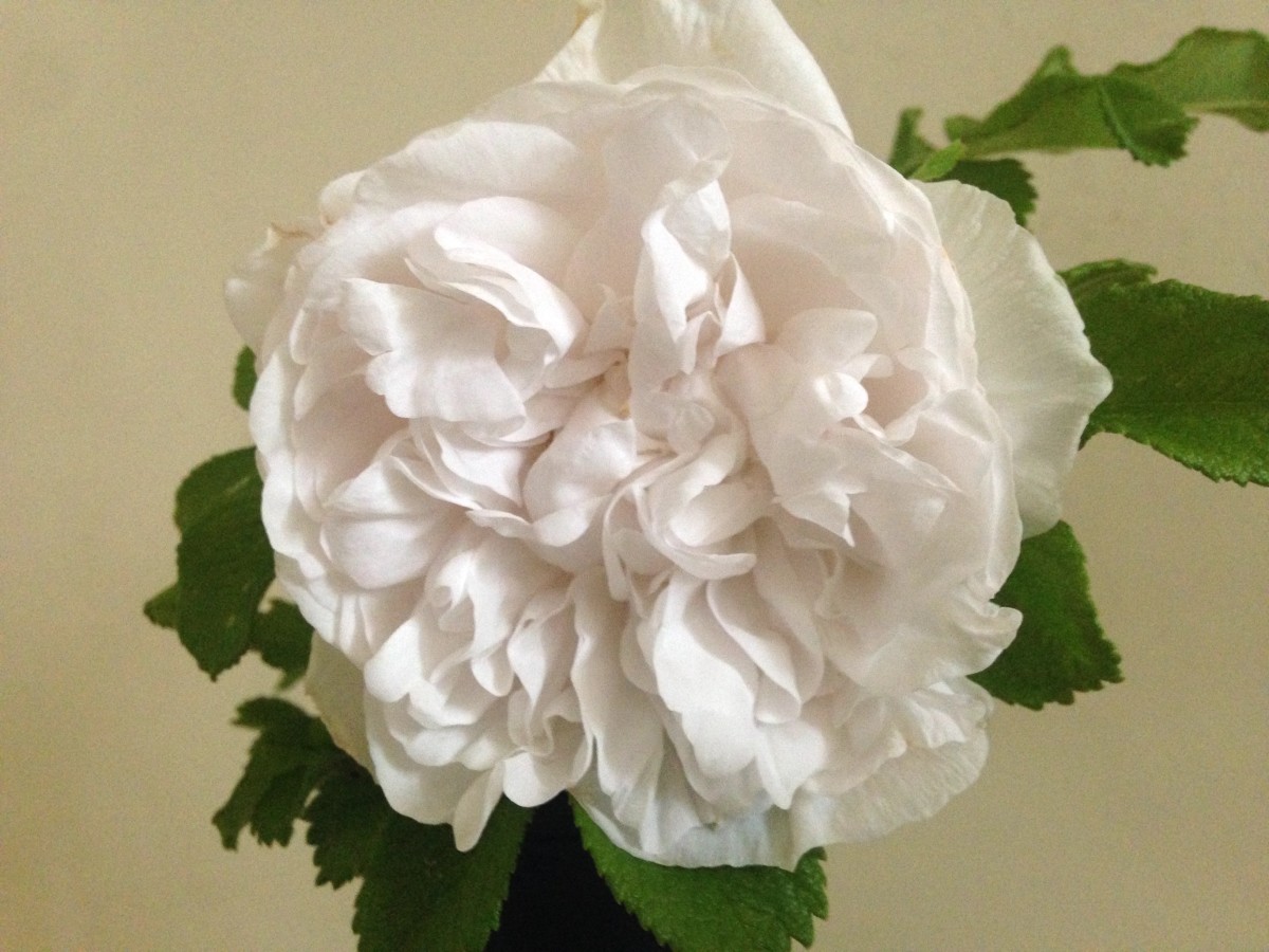 Highly fragrant large pure white flowers have the faintest pink in the center when opening. Repeat bloomer. Dark green foliage and no hips. Doesn’t hold up long in a vase, but if you bring this rose inside, the incredible scent will fill the room. One of the most fragrant in our antique rose trials.