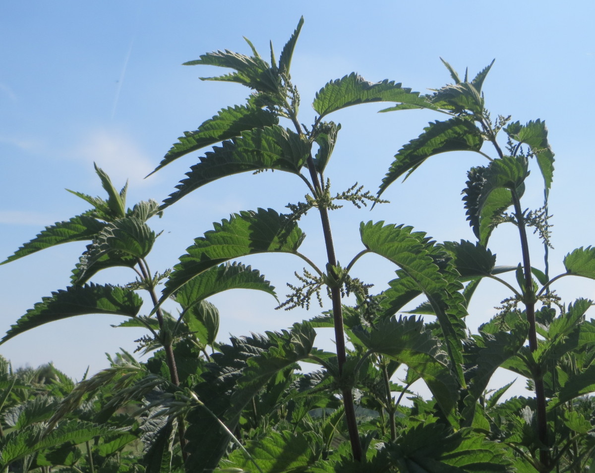 3–6' tall.The benefits of this plant outweigh the risk of a short-lived sting. Biodynamic gardeners use the dark green nettles to increase potency of neighboring herbs and to stimulate humus formation. Young shoots are high in minerals—the leaves are delicious steamed as early spring greens or dried and brewed as tea. Handle fresh and dry herb with gloves. Cooking or steeping removes the sting.