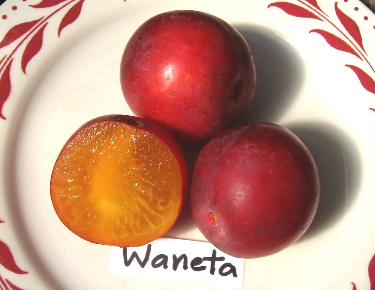 Hansen said of Waneta: “My belief is that in this variety I have combined the best points of the native and the Japanese plum. It is probably the largest [fruit] of over 10,000 seedlings.”