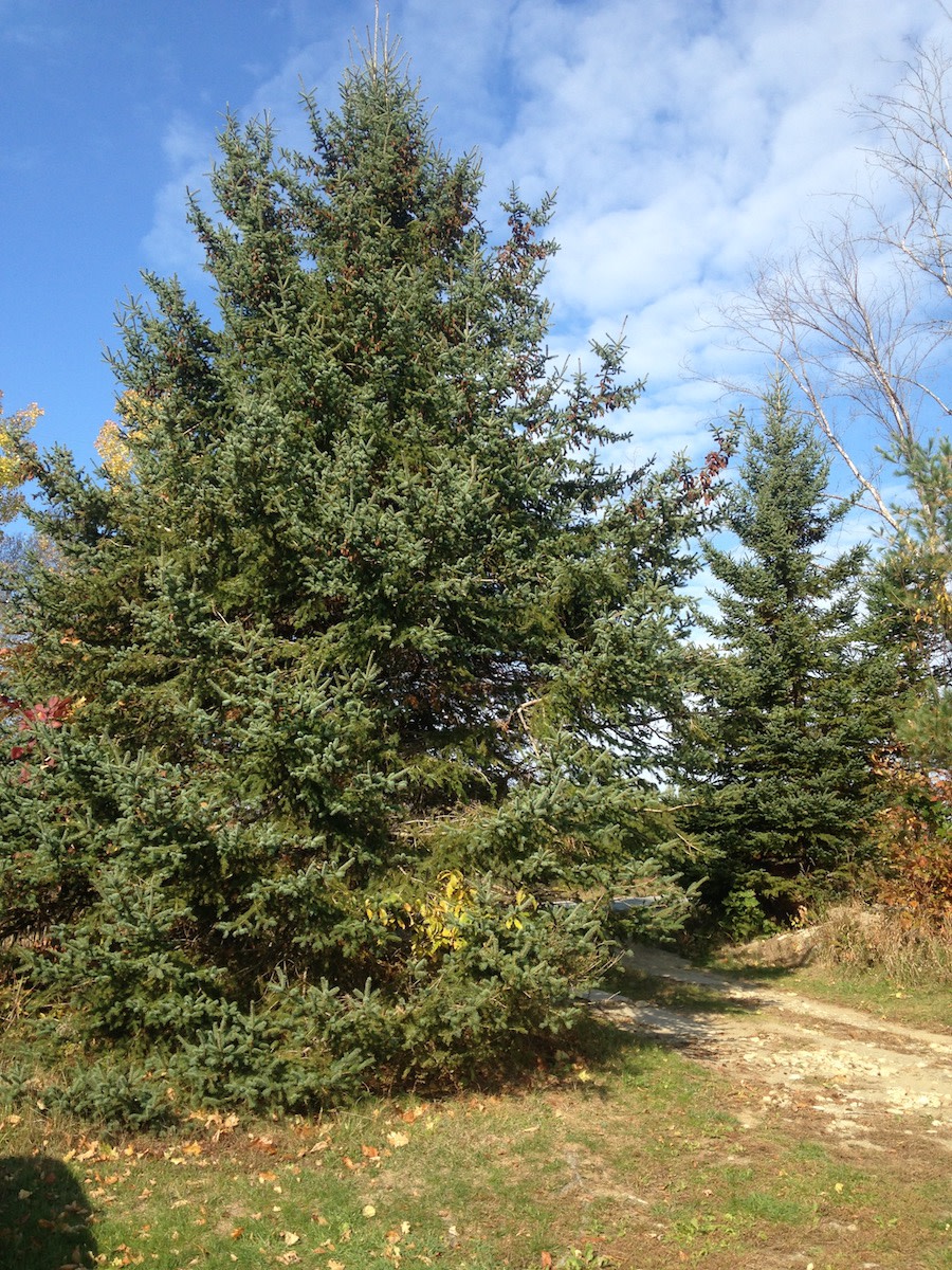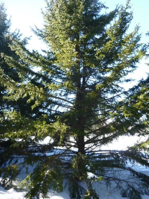 One of the best trees for wind blocks and privacy screens. Trunk diameter reaches up to 2'. Wood commonly used for lumber, pulp and paddles. Harvest bright green spruce tips in late May to early June and process into citrusy sugar, syrup, vinegar or cordials. High in vitamin C.