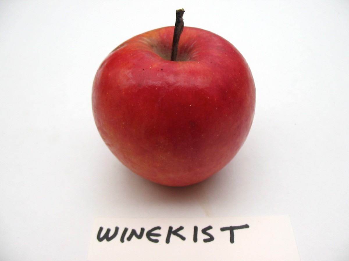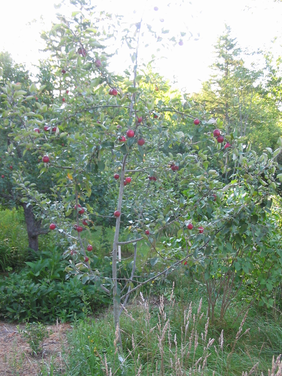 Medium-sized fruit is wine red with patches and stripes of darker red and very small white dots. The very juicy coarse flesh is almost solid beet red, a deeper color than Redfield. Extremely tart tasty cranberry flavor. Makes a colorful addition to fresh cider or sauce. Good fresh eating for those who like it tart. For many years we assumed the apple was the creation of the Winthrop, ME, fruit explorer and collector Morris Towle, who had it in his collection. Dan Bussey’s research has straightened that out. It must have come back east shortly after its introduction.