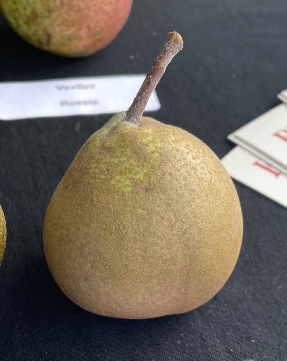 Seedling pear from Belgium, early 19th c. Brought to the U.S. from England in 1823. Storage pear with fantastic flavor—easily lasts in the cellar through February.