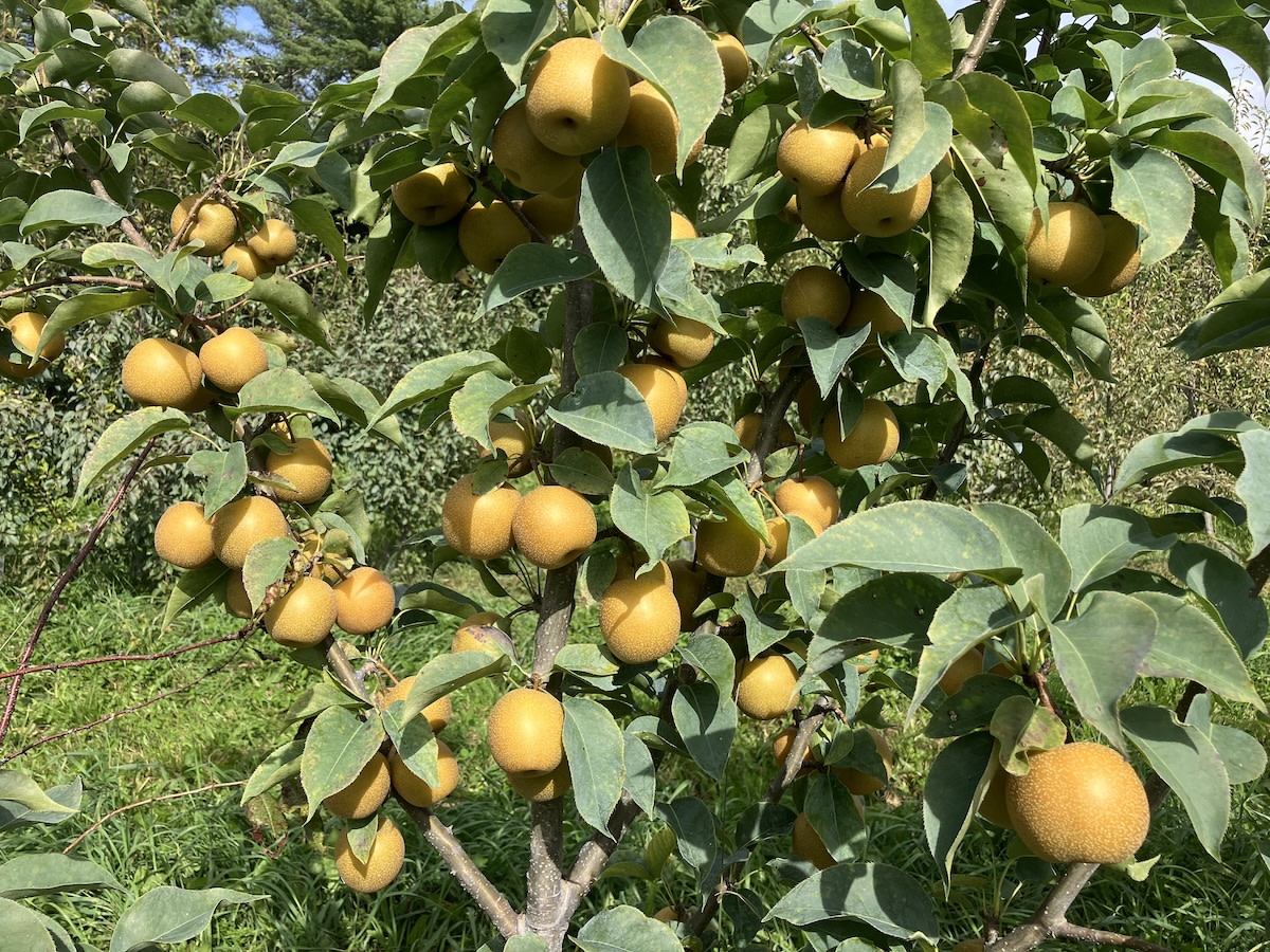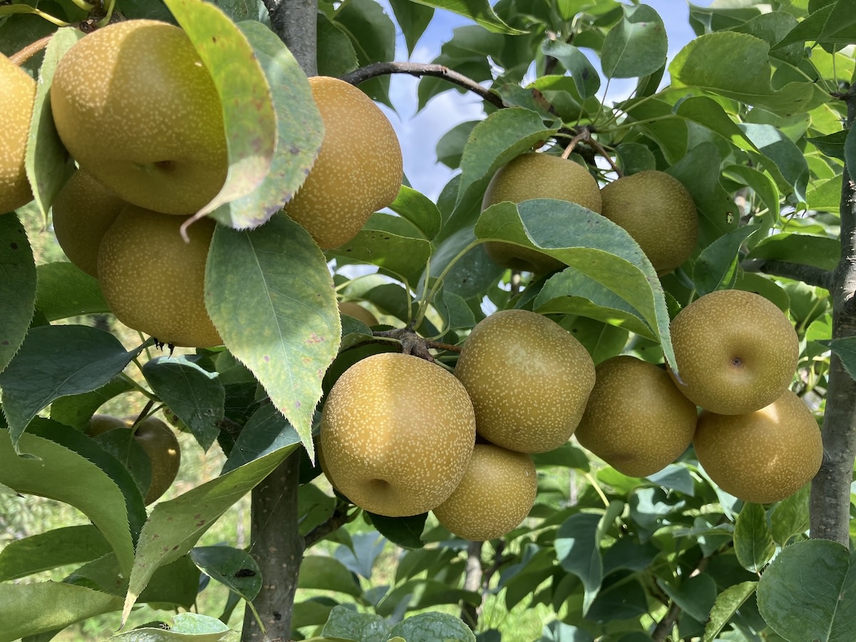 Fine-textured off-white flesh is crisp, juicy, aromatic and sweet. Large conic light brown russeted fruit. Means ‘good pear’ in Japanese. It is a good variety! One of the folks at Fowler Nurseries described it to us as having “a little bit of a zip” to it. Harvest after Hosui and before Shinko. Upright medium-vigorous tree. Moderate tolerance to fireblight. Z4/5. (3–6' bare-root trees)