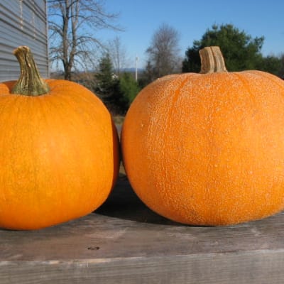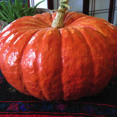 Culture: May be direct-seeded or transplanted. Direct seeding: Sow 4–5 seeds per hill when weather has warmed after danger of frost. Allow 4–6' between hills. Thin to 3 best plants. Use row covers and low tunnels to hasten maturity and reduce insect damage. Transplanting: Start indoors three weeks before setting out. Do not disturb the roots. Transplant bush varieties 18" apart, vining varieties 30" apart. Tender, not frost hardy. Heavy nitrogen feeders. Excessive heat and/or drought can prevent blossom set, reduce yields. Pumpkins can take one or two light frosts on the vine. To improve flavor and storage, field cure for at least 10 days after harvest, covering if hard frost threatens. Store under proper conditions, at least 50° and 60–70% relative humidity in a place with good air circulation. Do not pile up pumpkins. Inspect periodically and be sure to use damaged, stemless or small fruit first. Minimum germination temperature 60°, optimal temperature range 70–90°.