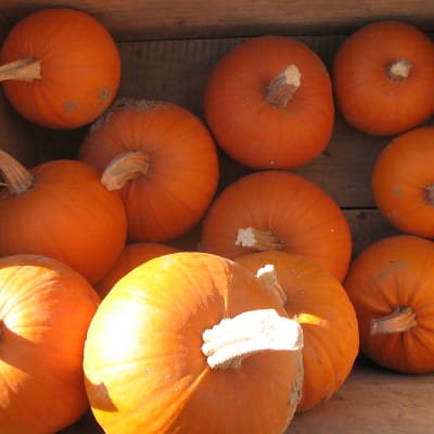 Botanically, there are no such things as pumpkins. But we know one when we see one. “Pumpkins” listed here are three species; Cucurbita pepo (mini pumpkins, small pie and some jack-o’-lanterns), C. moschata (cheeses) and C. maxima (jack-o’-lanterns, decorative and culinary).