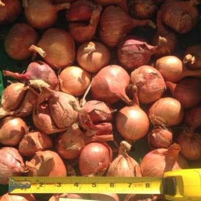 Allium cepa (aggregatum group) (105 days) Open pollinated. Handsome golden-bronze 1¼–2" bulbs uniformly divide into triples and quadruples, store into the spring, and have a luxurious caramel flavor.